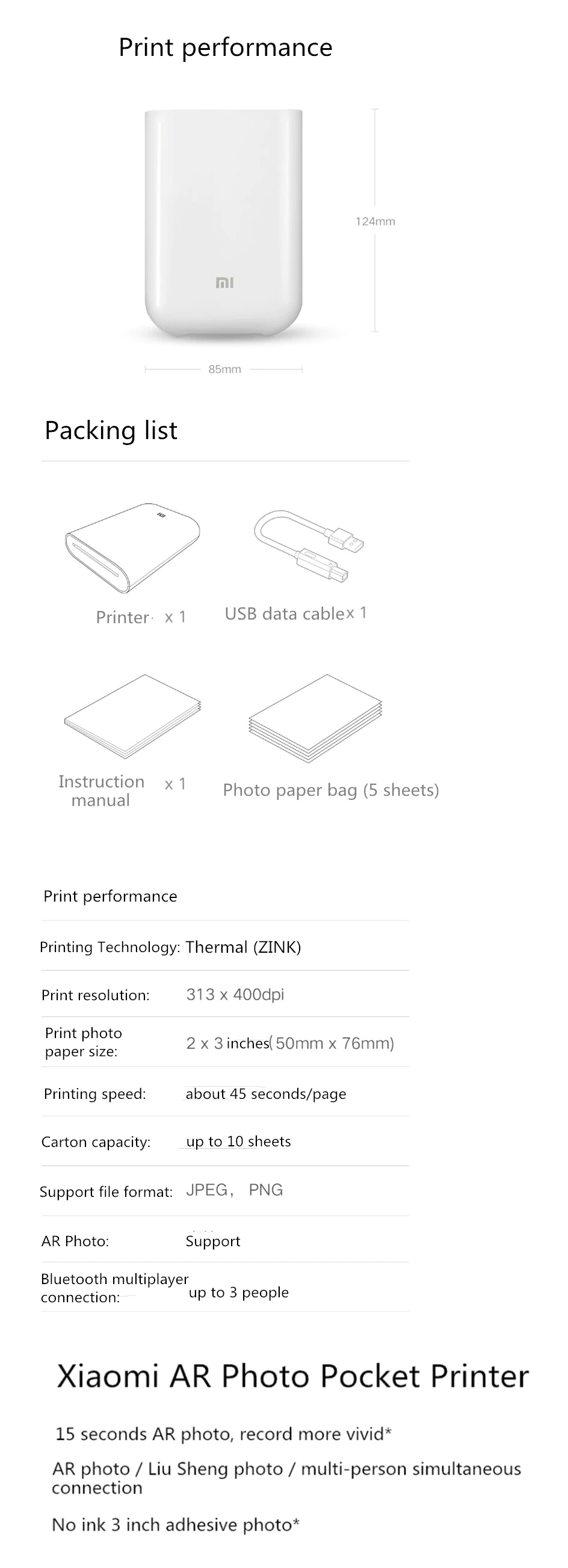 Xiaomi-Impresora De Bolsillo Mijia Ar Para Fotos, Dispositivo Mini De Impresión Portátil Versión Global, 300Dpi Batería 500Mah, Con Opción De Compartir Imágenes