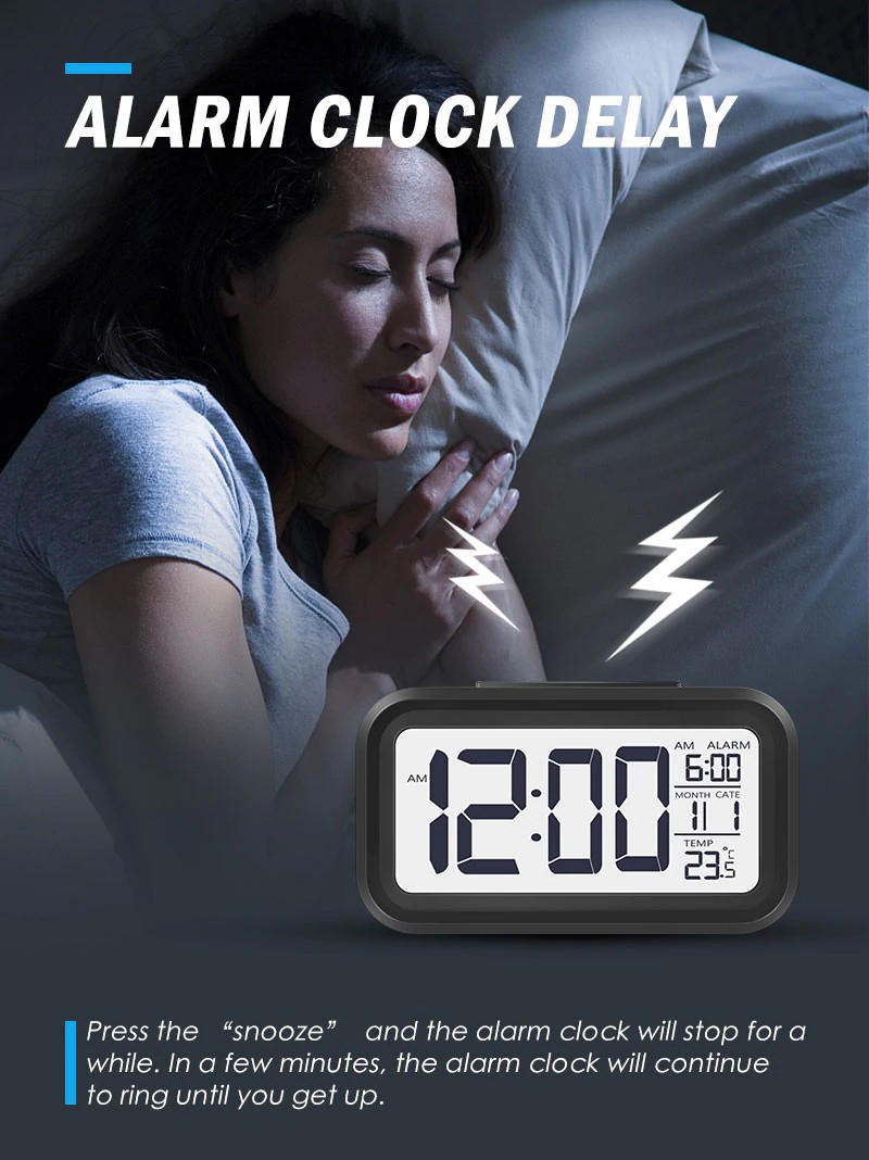 2) función de luz inteligente: la tecnología de luz inteligente utiliza un tipo de luz suave para ver la hora de la noche, pero no brilla ni afecta al sueño. Lo que es más importante, ahorra electricidad y la luz inteligente se puede cambiar libremente.