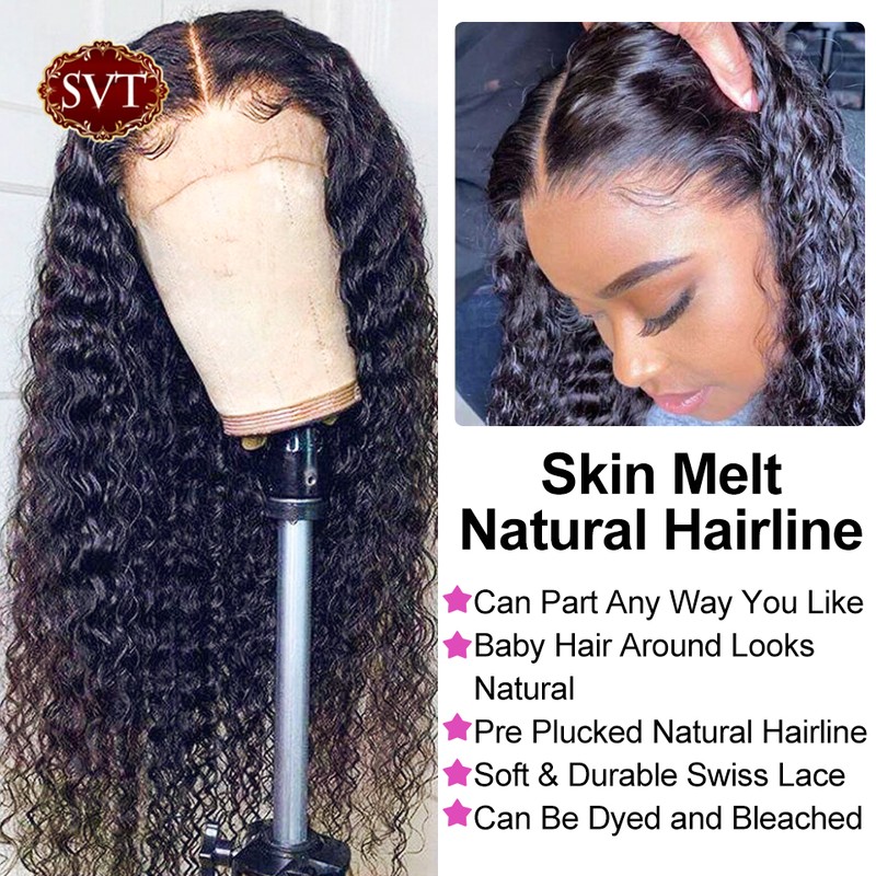Svt-Peluca India Rizada Con Malla Frontal, Cabello Humano Para Mujeres Negras, Onda Profunda 4X4 Cierre Sin Pegamento, 13X4