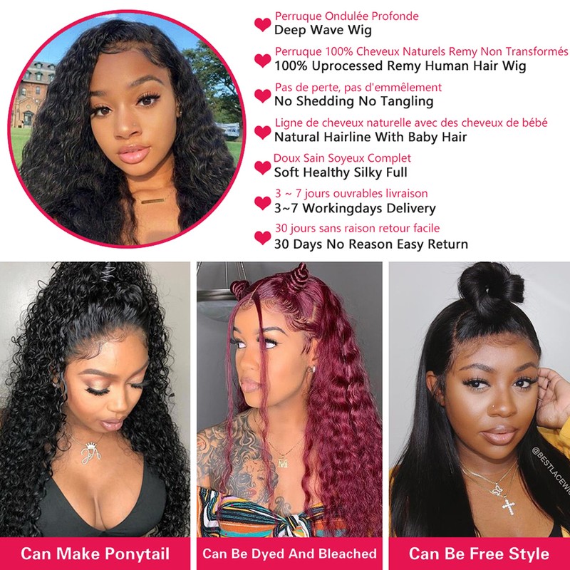 Densidad de peluca: peluca rizada profunda de 150% 180 densidad, gruesa y hinchable