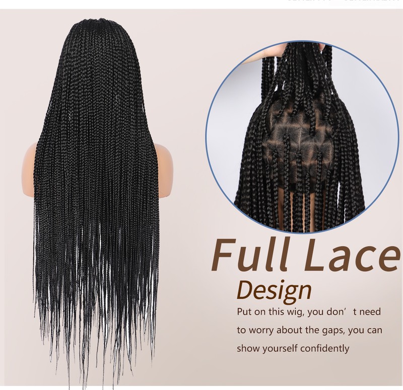 Kalyss-Peluca De Cabello Sintético Para Mujeres Negras, Cabellera Trenzada De 36 Pulgadas Con Encaje Frontal Completo Sin Nudos, Con Pelo De Bebé, Trenzas Sintéticas Súper Largas