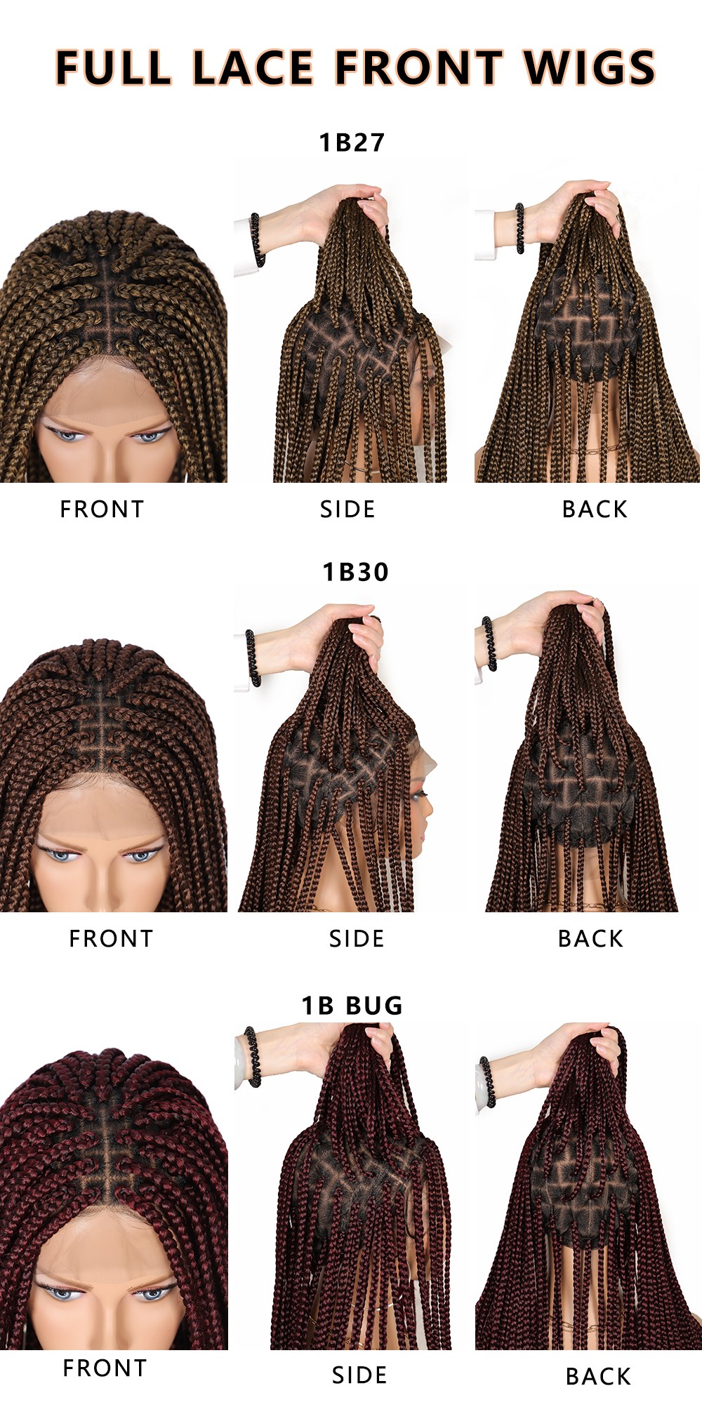 Característica1: Trenzas de encaje negro de caja sin nudos
