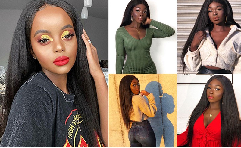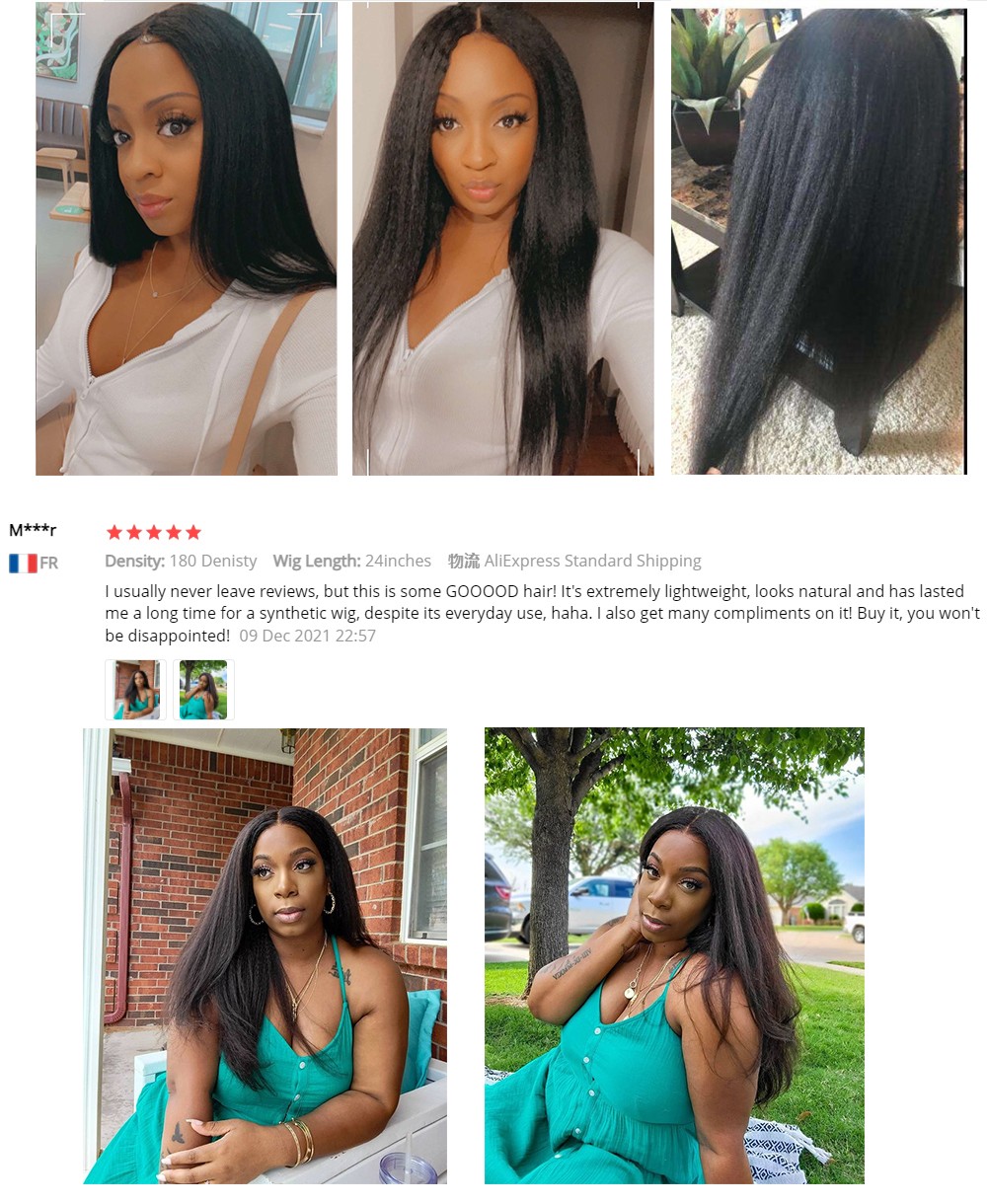 Peluca Recta Rizada Con Malla Frontal Para Mujer, Cabello Sintético Con Temperatura De Calor, Sin Pegamento Color Negro Yaki, 180% Densidad