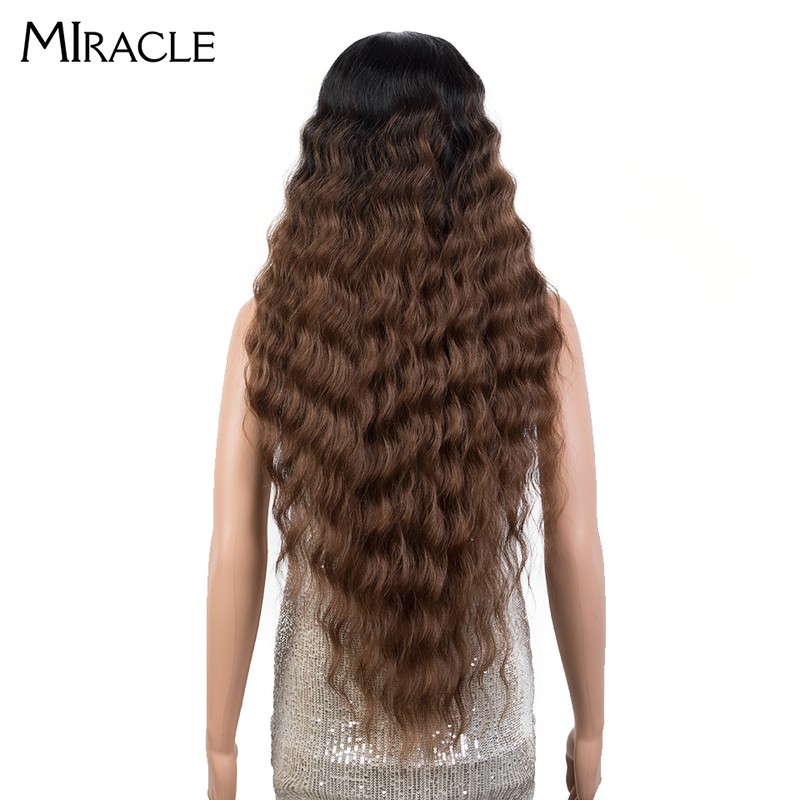 Título:Miralce-peluca larga negra de fibra de alta temperatura para mujer, postizo sintético con encaje frontal de alta densidad, 30 pulgadas, 150%
