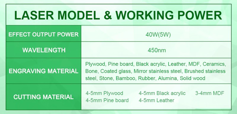 1. Módulo láser azul, un cabezal láser profesional con alta velocidad y alta estabilidad. Luz azul brillante, fácil de localizar al tallar.