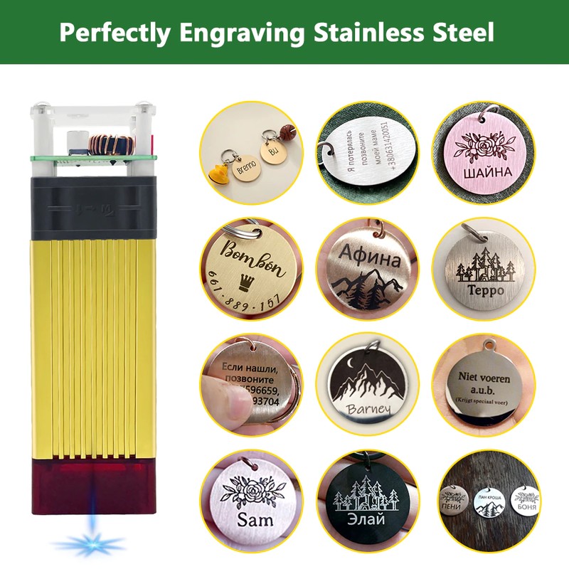 Módulo láser azul --- cabezal láser profesional con alta velocidad y alta estabilidad. Luz azul-Violeta brillante, fácil de localizar al grabar.