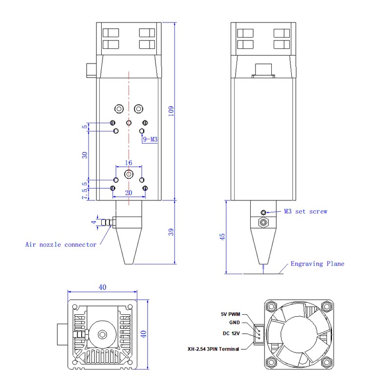 3. Enfoque fijo de 45mm --- adecuado para máquina de grabado de tres ejes, fácil de instalar.