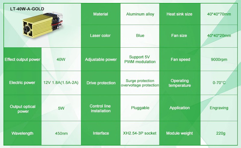Árbol Láser 20W 40W 80W Módulo Láser 450Nm Cabezal Azul Para Máquina De Corte Diy Grabado Láser Herramientas De Trabajo De Madera