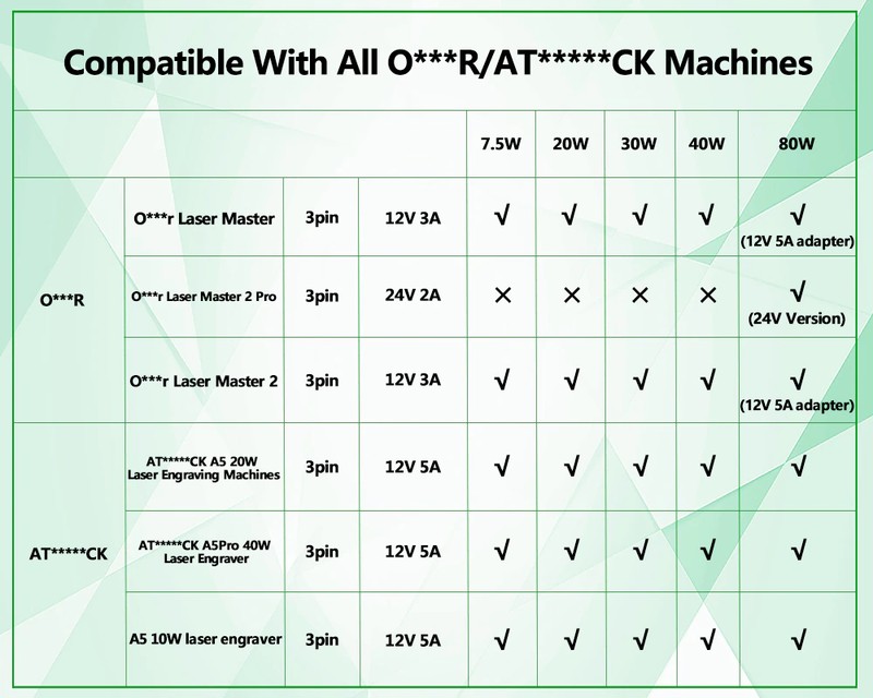 4. Amplia compatibilidad --- cabezal láser de 12V 4A, compatible con tipos de máquinas de grabado láser