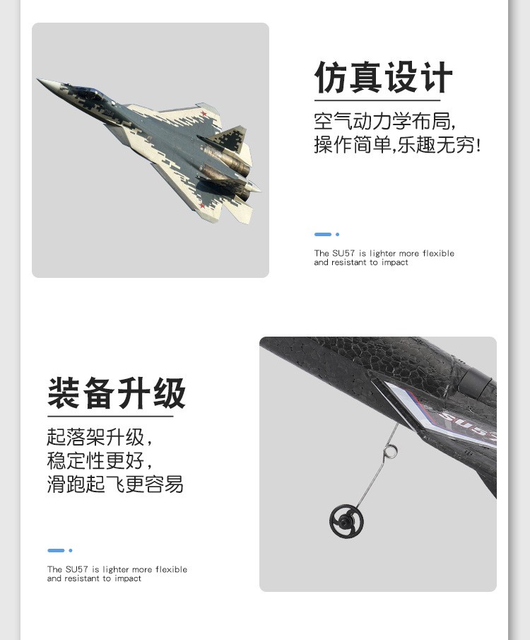 Avión Teledirigido Su 57, Nuevo Avión Teledirigido Con Ala Fija Ligera, De Espuma Control Remoto Eléctrico, Más reciente