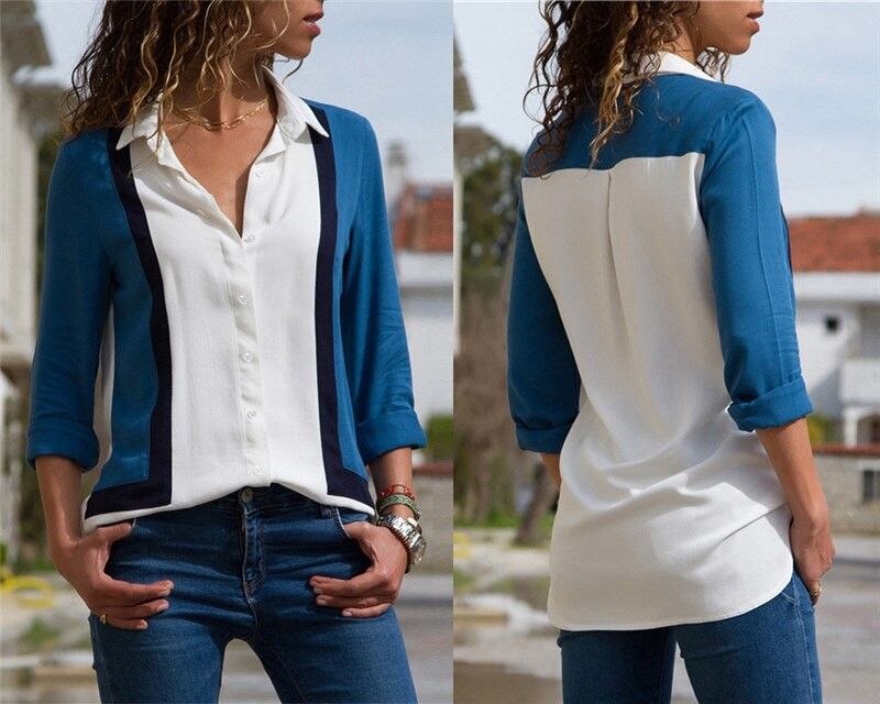 Camisa De Gas Con Cuello En V Para Mujer, Top Informal Con Costuras De Color Sólido Para Primavera Y Otoño, Más reciente