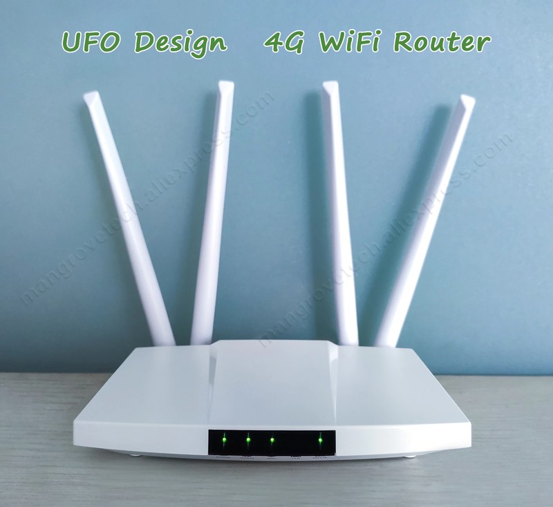 LC112(LM321) 4G CPE es un enrutador wifi de escritorio 4G LTE con un diseño genial de forma de nave espacial UFO, cuatro antenas externas, 2 puertos RJ45, compatible con 32 usuarios WiFi, utiliza tarjeta Micro SIM.