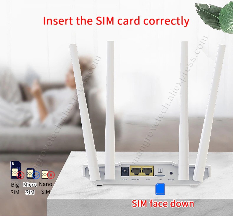1. Nuestro enrutador/módem 4G solo admite tarjetas SIM normales universales. Para algunas tarjetas SIM bloqueadas, contrate tarjetas SIM que los operadores no permiten usar en enrutadores wifi o solo permiten usar en sus dispositivos autorizados. Es posible que este artículo no funcione. (Si su tarjeta SIM no puede acceder a Internet, por favor no se preocupe. Por lo general, cambia la tarjeta SIM universal de otro operador, entonces funcionará. O puede contactarnos para obtener ayuda.)