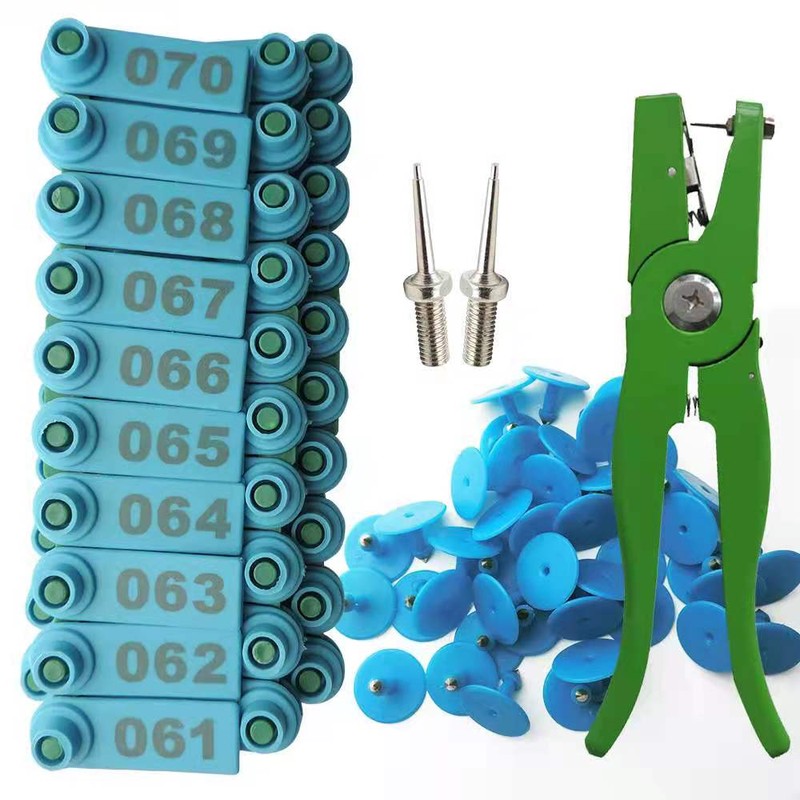 Alicates De Etiqueta De Oreja Animal Ganado, Kit Identificación Oreja Oveja, 001-100, Con 2 Pines Para Instalar Etiquetas De Ganado Y Cerdos