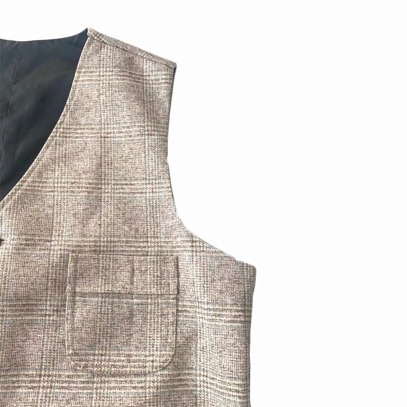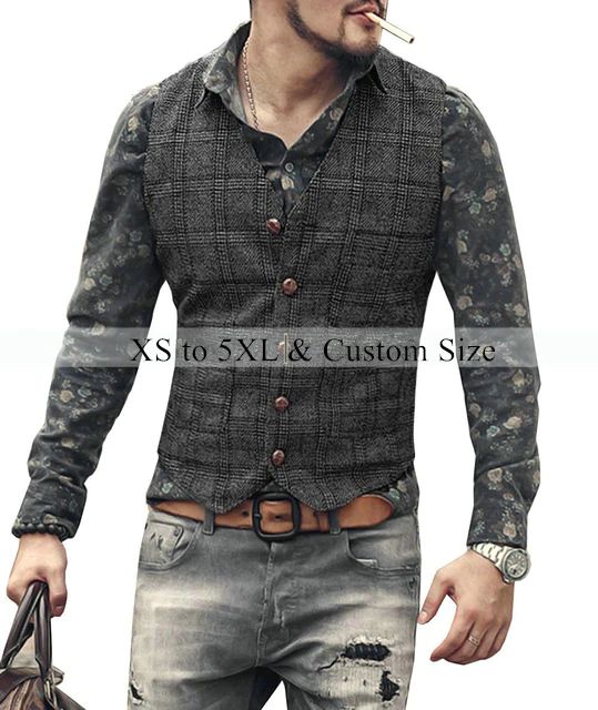 Chaleco De Traje Para Hombre, Chaqueta Steampunk A Cuadros A Rayas, Cuello En V Slim Fit Ropa De Boda, Marrón Y Negro