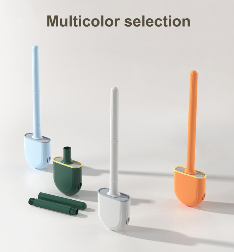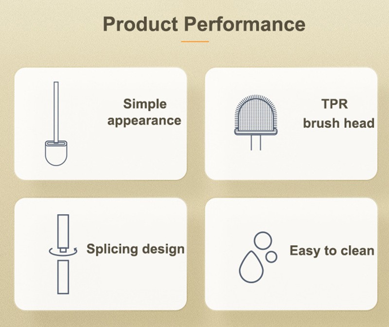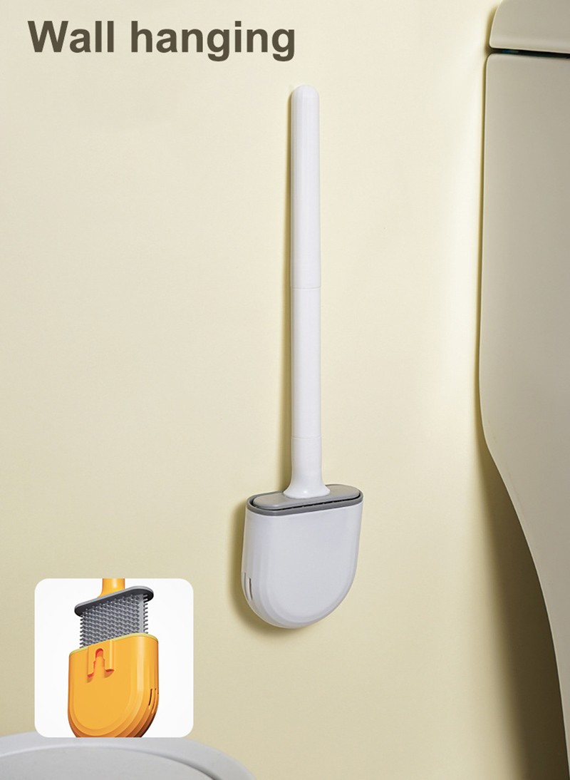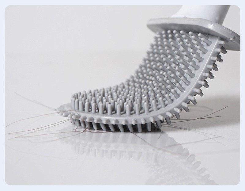 TPR suave, las cerdas de silicona tienen buena capacidad de limpieza, pueden entrar en el borde del asiento del inodoro, limpieza profunda, no dañarán el esmalte de porcelana.