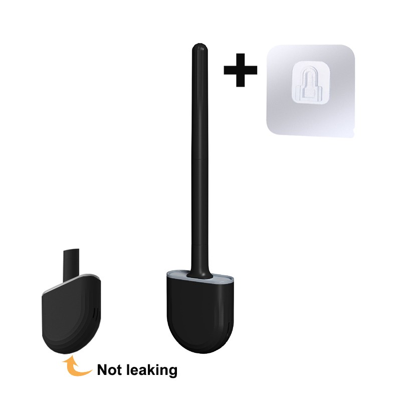 Mini Escobilla De Inodoro Con Soporte, Cepillo Limpiador De Inodoro Silicona Negra Mango Largo, Montado En La Pared, Accesorios De Baño