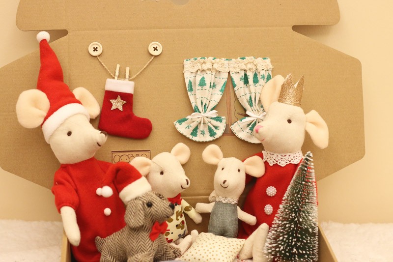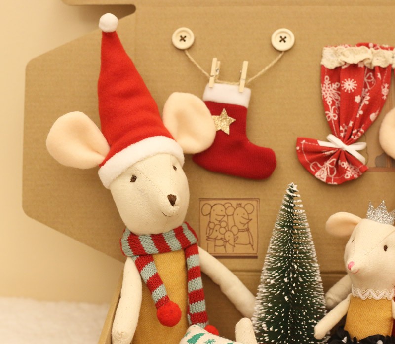Casa De Muñecas Familiar De Ratón Navidad Para Niños, Juguetes Peluche Ratón Suave, Caja Muñecas De Alta Calidad