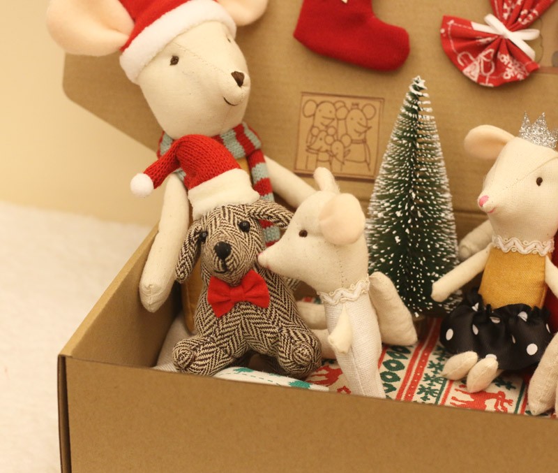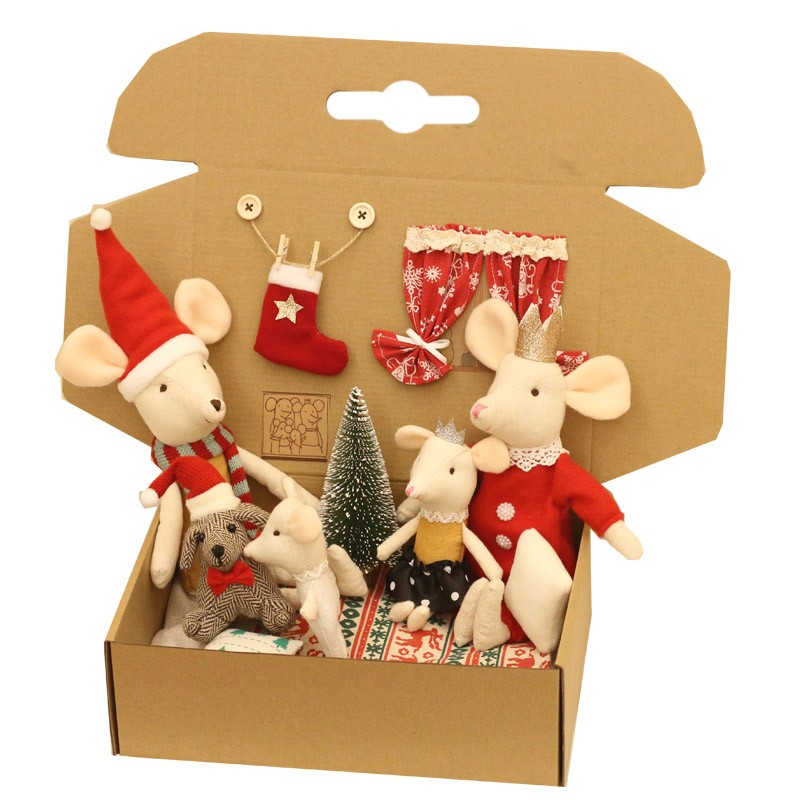 Casa de muñecas de la familia del ratón de Navidad muñecas de peluche lindas niños regalos de navidad juguetes de peluche de ratón suave muñeca de caja de alta calidad