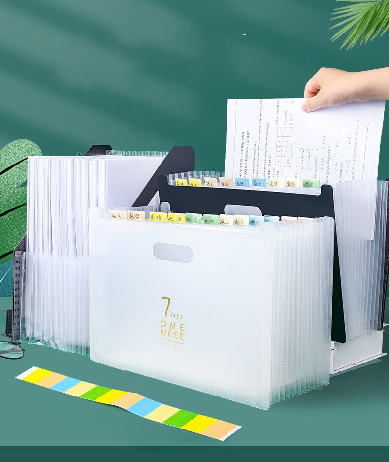 Fácil acceso: la parte inferior en expansión permite una capacidad adicional y también ofrece la capacidad de ponerse de pie en su escritorio, 13 bolsillos junto con pequeñas etiquetas de colores que ayudan a clasificar eficazmente sus archivos y asegurar el contenido cómodamente. Esta carpeta de acordeón mantiene todo con el fin de ahorrar su valioso tiempo para elegir importante de un montón de archivos de desorden..