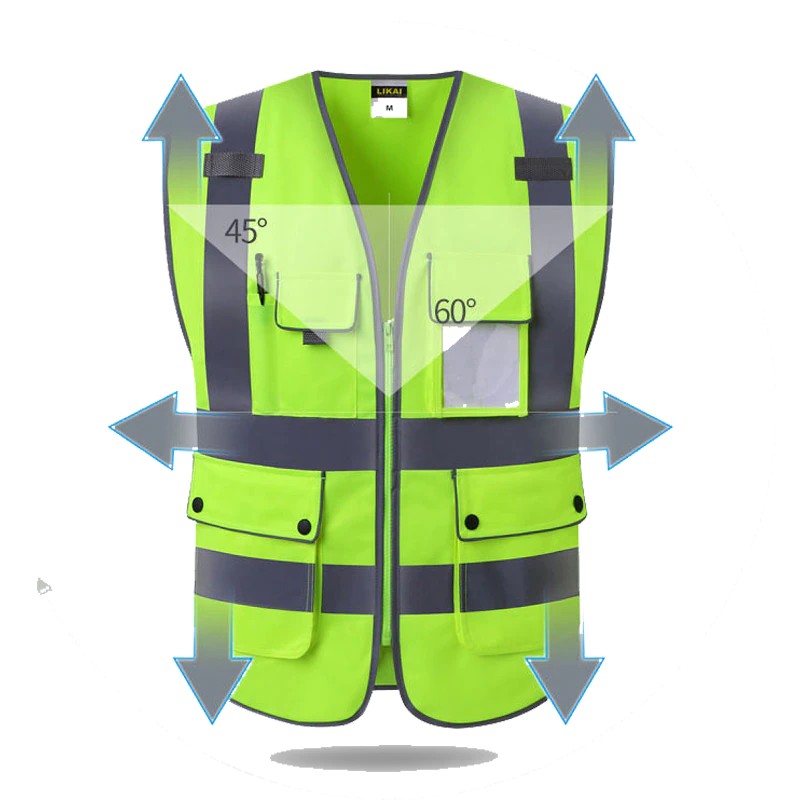 Seguro y fiable-la tira reflectante de fibra química de alto brillo puede garantizar un súper reflejo de 360 °, función reflectante e impermeable de alta visibilidad del chaleco reflectante, asegurando su seguridad en todos los aspectos.