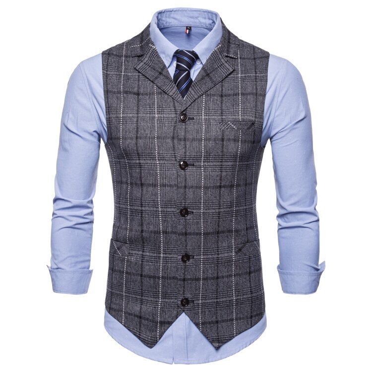 Chaleco Informal De Negocios Para Hombre, Chaleco De Celosía A La Moda, Sin Mangas Traje Inteligente Top Gris Y Azul, Novedad
