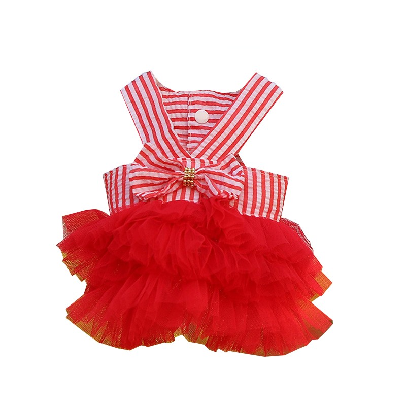 Falda de malla a rayas para mascotas, material de poliéster, tela cómoda y agradable para la piel. Estilo princesa, lindo y dulce, las mascotas son aún más lindas y dulces después de usarlas.