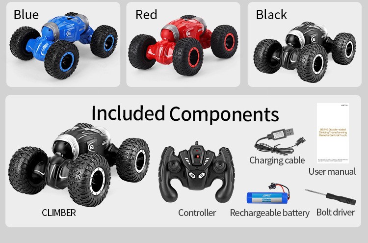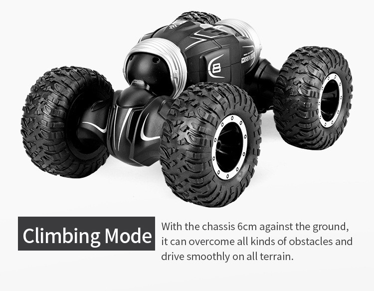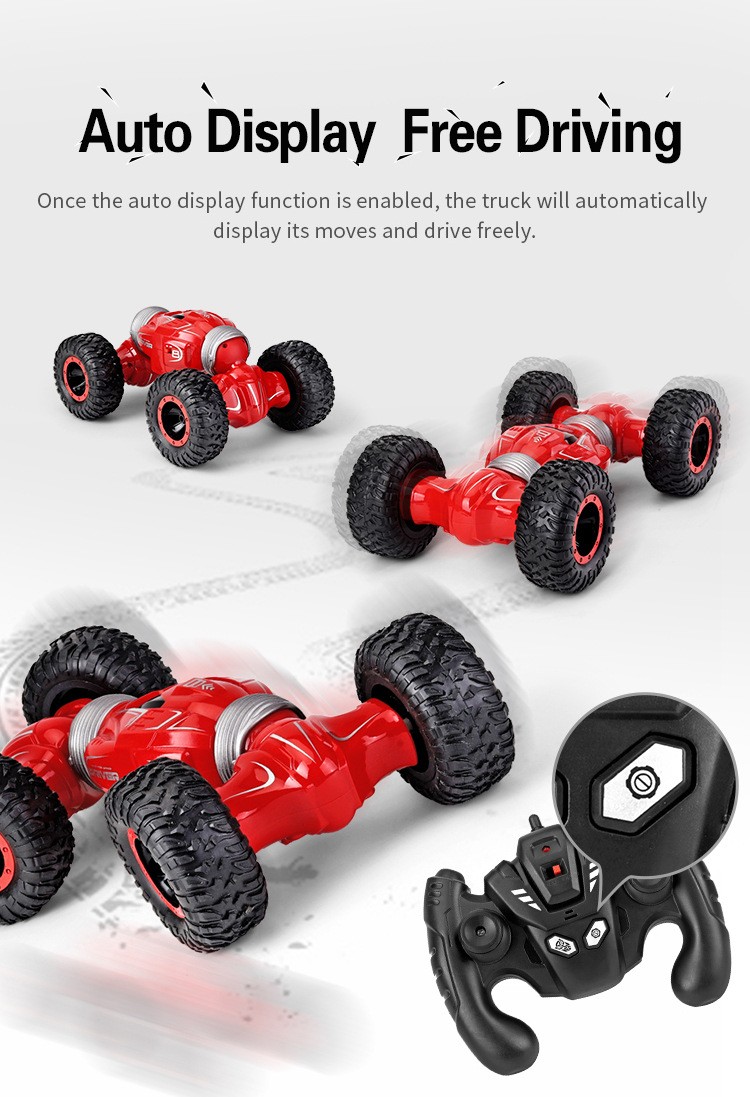 Este camión de control remoto adopta la tecnología de control remoto de 2.4Ghz, lo que le permite controlar de forma remota funciones como avance, retroceso, izquierda, derecha, transformación y visualización automática, etc. Su gran capacidad de escalada, además de sistemas de conducción 4WD y de doble cara, le ofrece una experiencia definitiva y duradera llena de emoción con su largo tiempo de juego.
