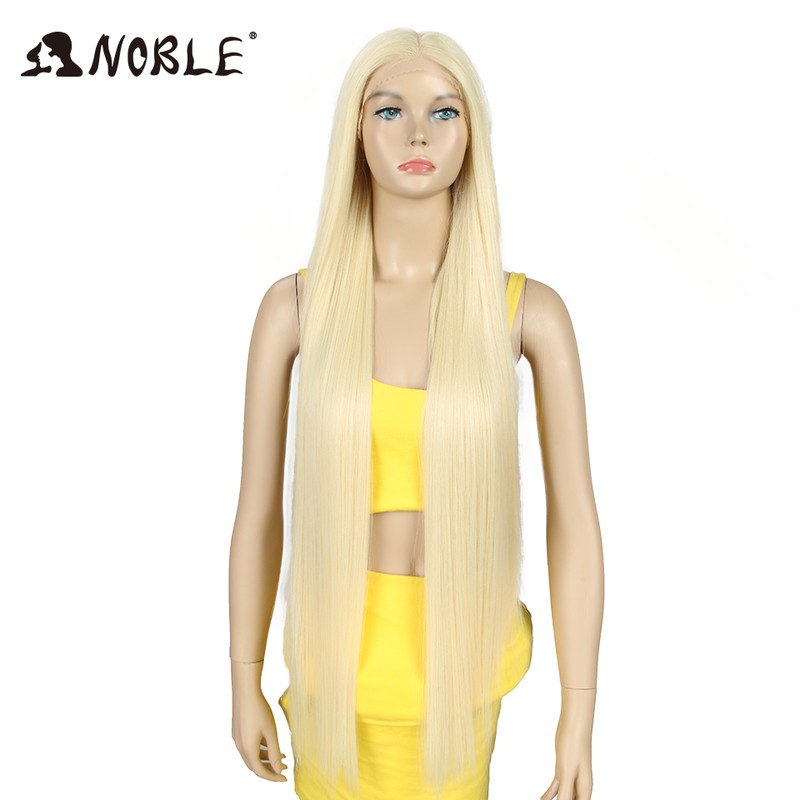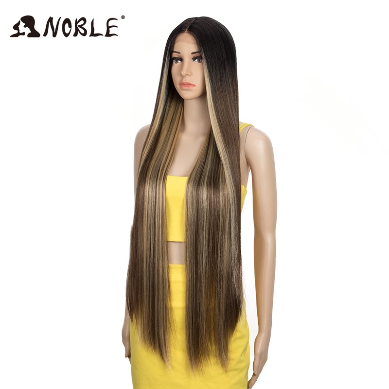 Noble-Peluca De Cabello Sintético Con Malla Frontal Para Mujer, Pelo Liso De 38 Pulgadas, Color Rubio Degradado, Cosplay Pelucas De Mujer