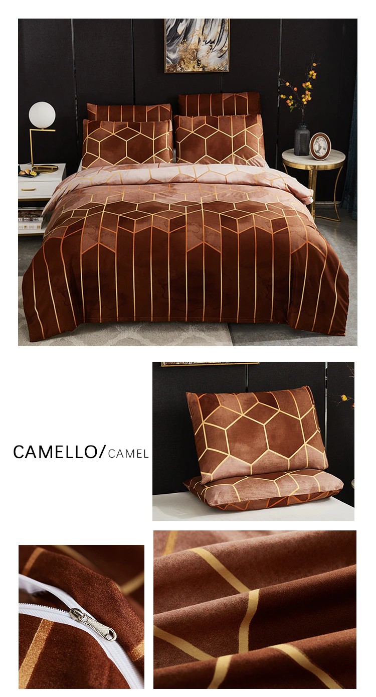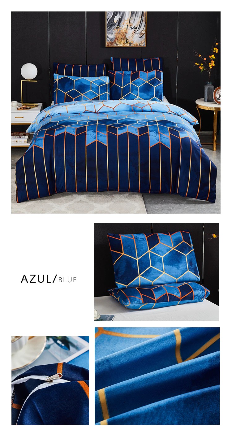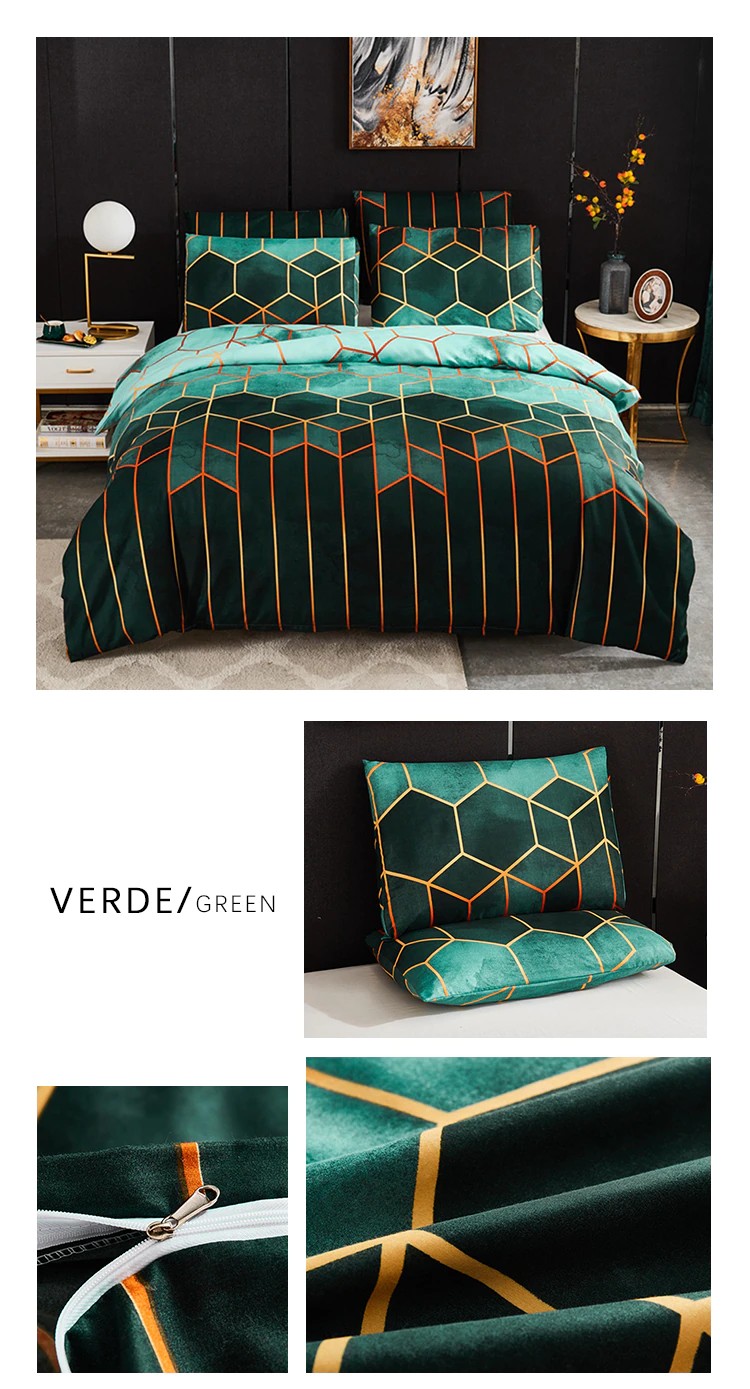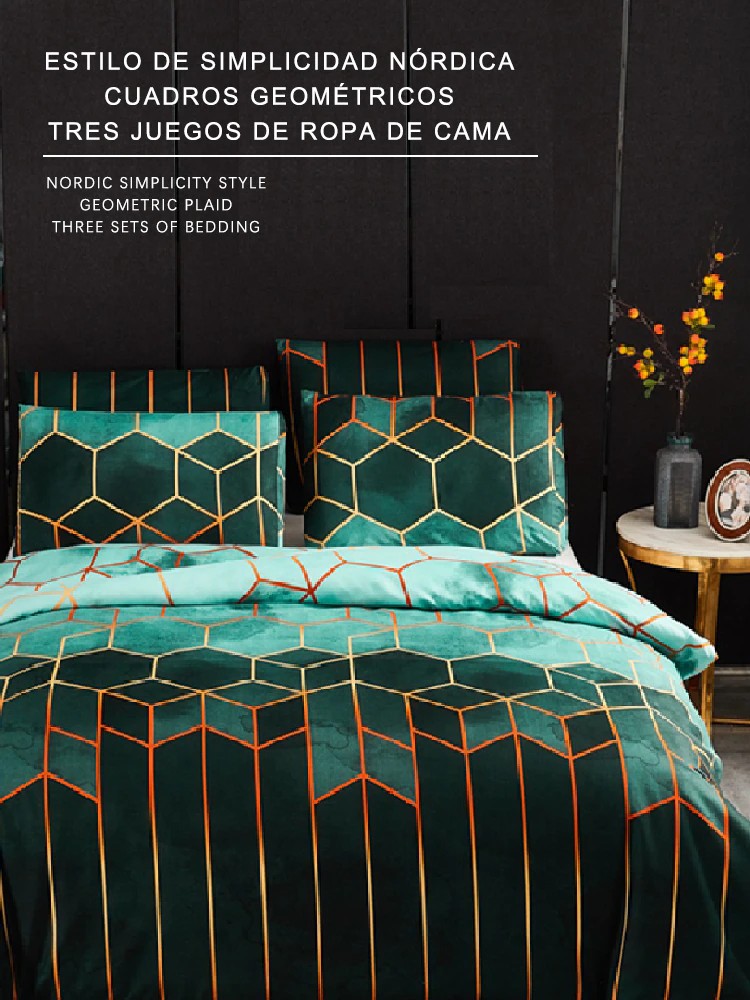 Juego De Funda Nórdica Dorada Con Diseño De Cuadros Geométricos, Juegos Cama Para Edredón, Tamaño King Y Queen Doble 240X 220, Forro De Almohada Sin Sábana