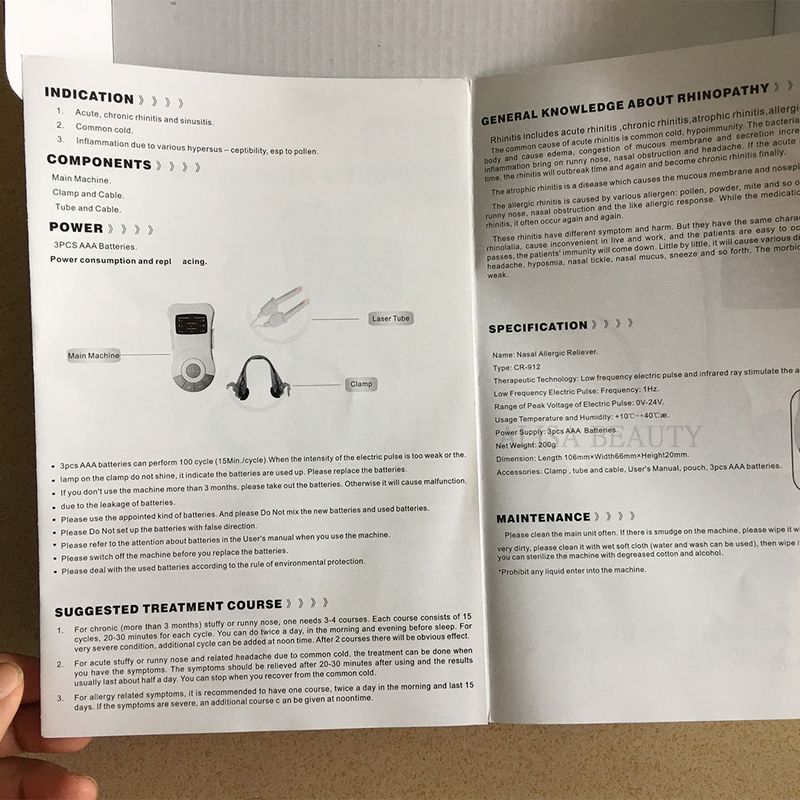 - Terapia sin medicamentos, sin necesidad de tomar medicamentos, 15 minutos para resolver la congestión nasal, picazón nasal, estornudos, goteo nasal, ronquidos, dolores de cabeza y otros problemas.