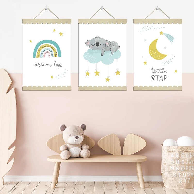 • Póster Magnético De Madera De Pino, Marco Suspensión, Natural Para Foto Pintura Y Lona Pared, Colgador De Hierro Artístico