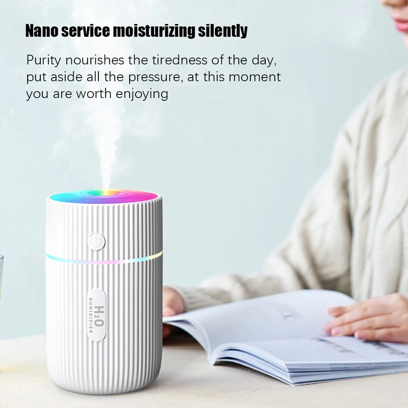 El mini humidificador cuenta con un interruptor de llave y un efecto de luz de atmósfera colorida.