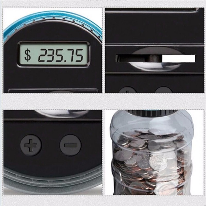 Gestión inteligente del dinero, puede mostrar automáticamente el valor nominal cada vez y la cantidad total de dinero dentro del frasco, adecuado para todas las monedas circulantes.