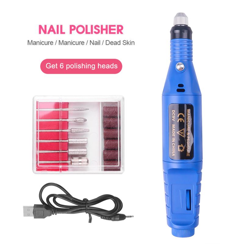Taladro eléctrico profesional para uñas, herramienta de manicura para manicura, 6 Bits