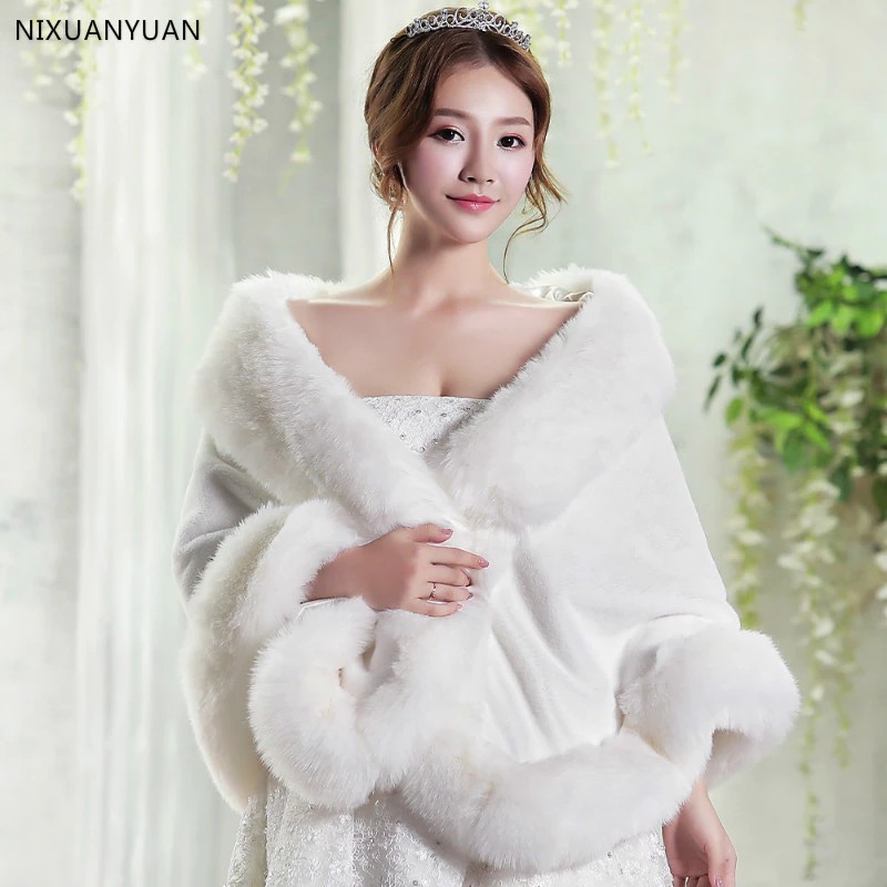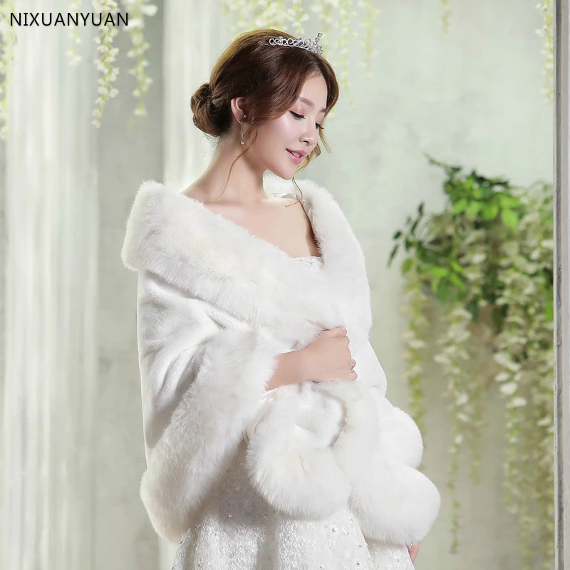 Bolero De Boda Rojo/Blanco Para Mujer, Chales De Boda Piel Sintética, Abrigo Fiesta Chaqueta Nupcial, Chal De Invierno