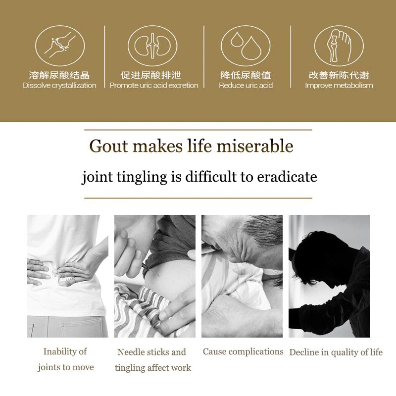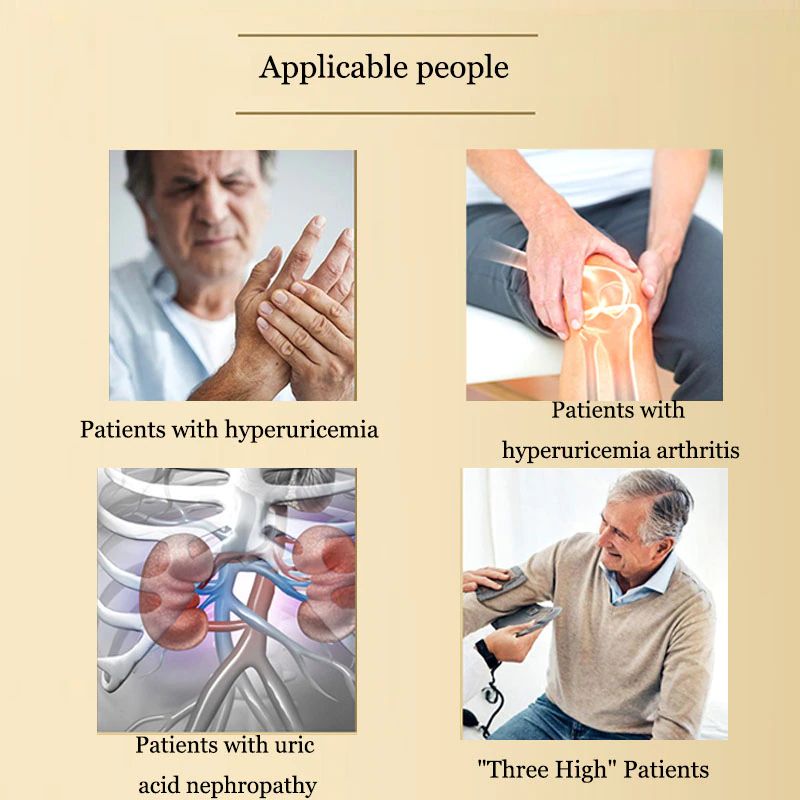 -Al reducir el ácido úrico, sus suplementos de alivio de gota son conocidos por el alivio para el dolor de articulaciones, ¡fortalece la circulación saludable y regula la presión arterial!