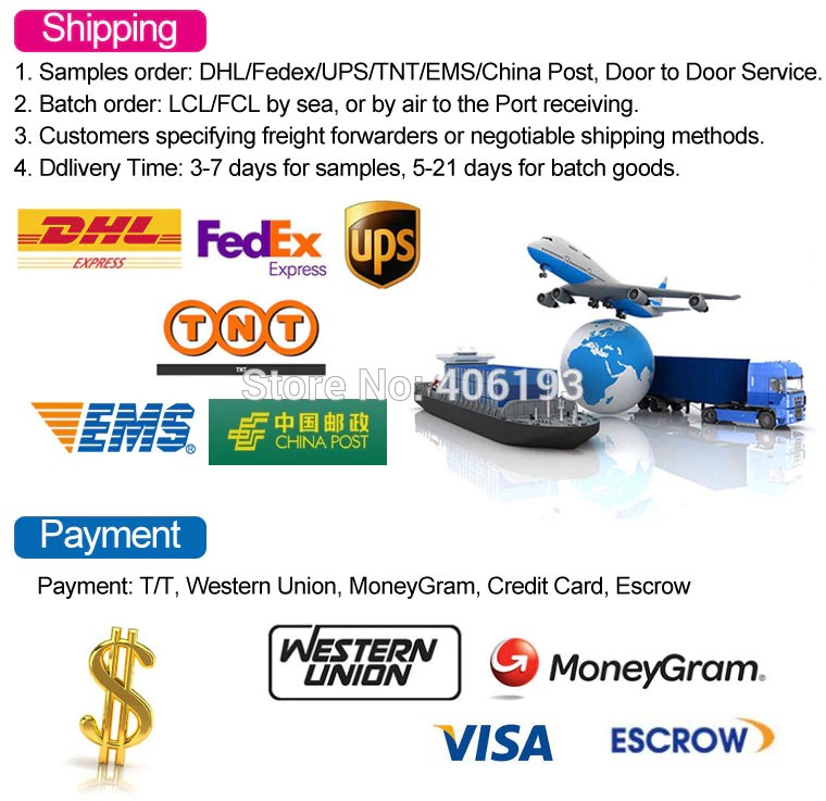 1. Envío vía: China Post Air Mail, EMS, DHL, UPS, TNT, FEDEX