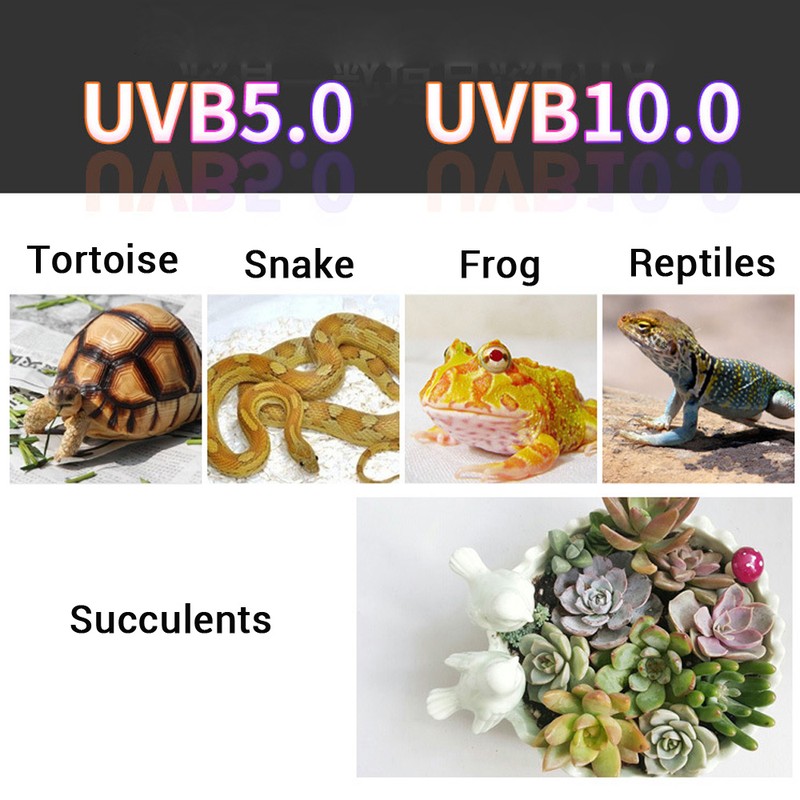 UVB5.0 es adecuado para reptiles que viven en bosques tropicales o áreas tropicales: como: iguanas verdes IG y otras iguanas, tortugas birmanas, tortugas estrellas, tortugas de radiación, piernas rojas y otras tortugas continental.