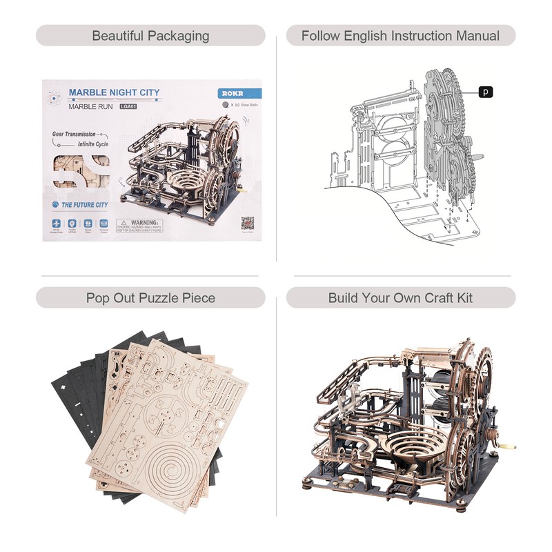 • Robotime Rokr-5 Tipos De Canicas Para Niños Y Adultos, Modelo De Madera, Juego Bloques Construcción Juguete De Montaje, Regalo