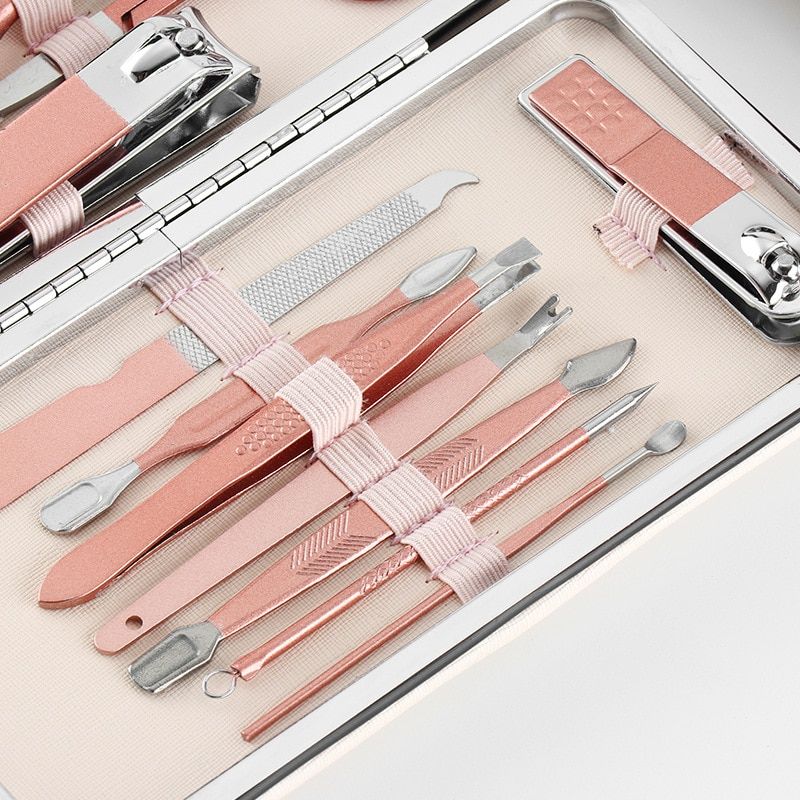 Juego De Manicura Profesional De Acero Inoxidable, Kit Cortaúñas De Color Oro Rosa, 18 Herramientas