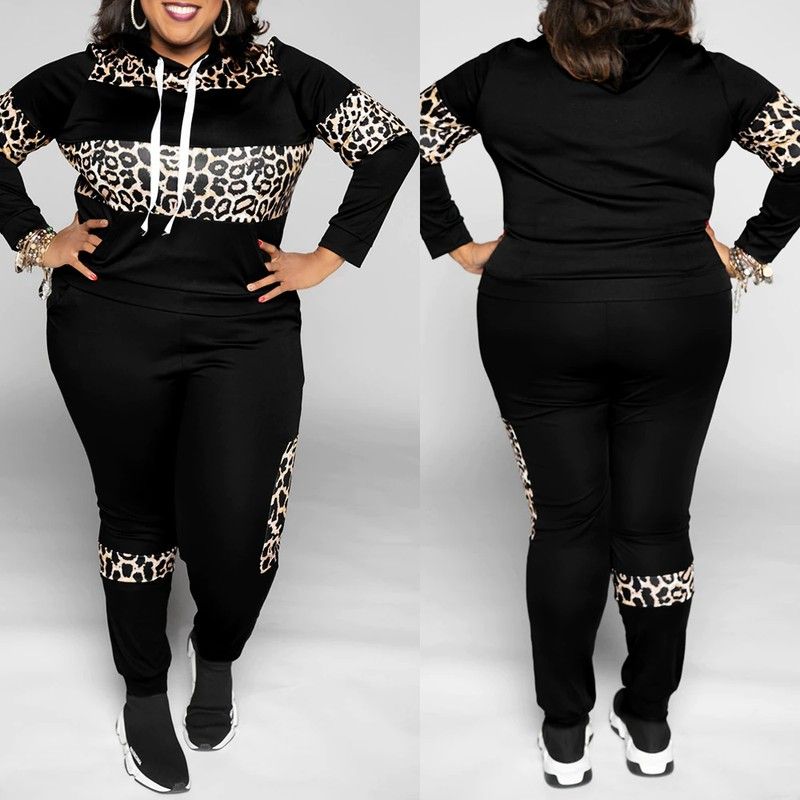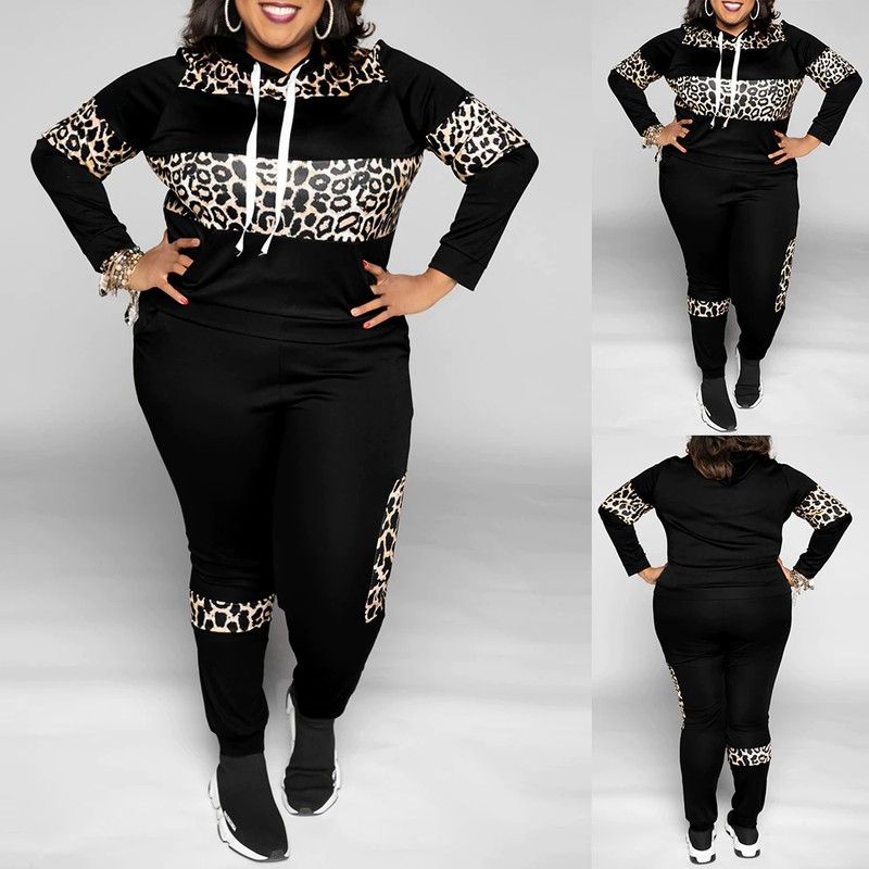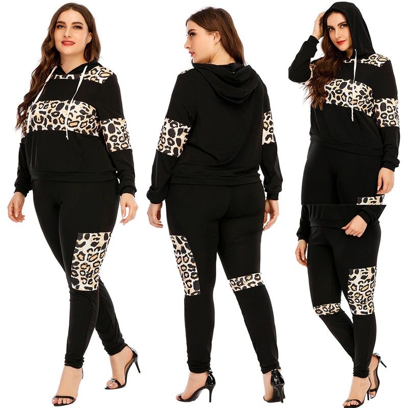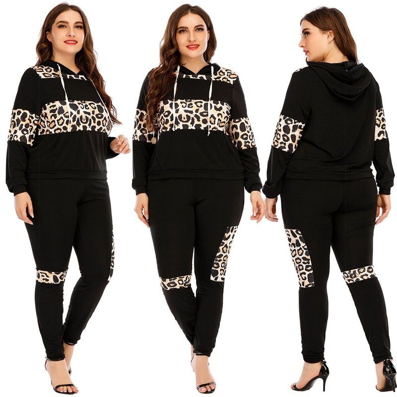 Conjunto De Ropa De 2 Piezas Para Mujer, Trajes Mujer Talla Grande, Chándal Con Estampado De Leopardo, D30