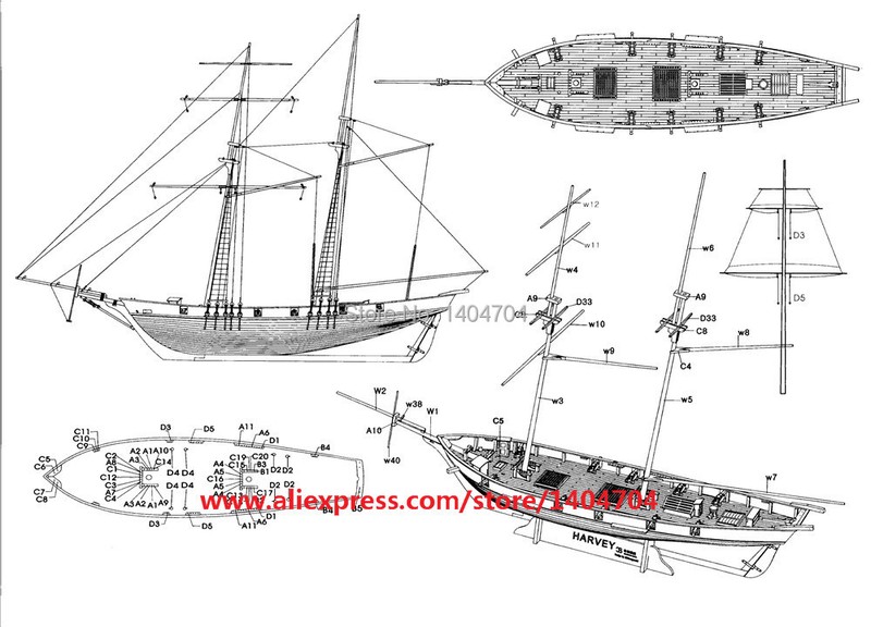 Escala 1/96HARVEY 1847 necesita 10 piezas de cañones de latón y 100 piezas de pernos de amarre de 6mm y 2 piezas de anclajes de aleación.
