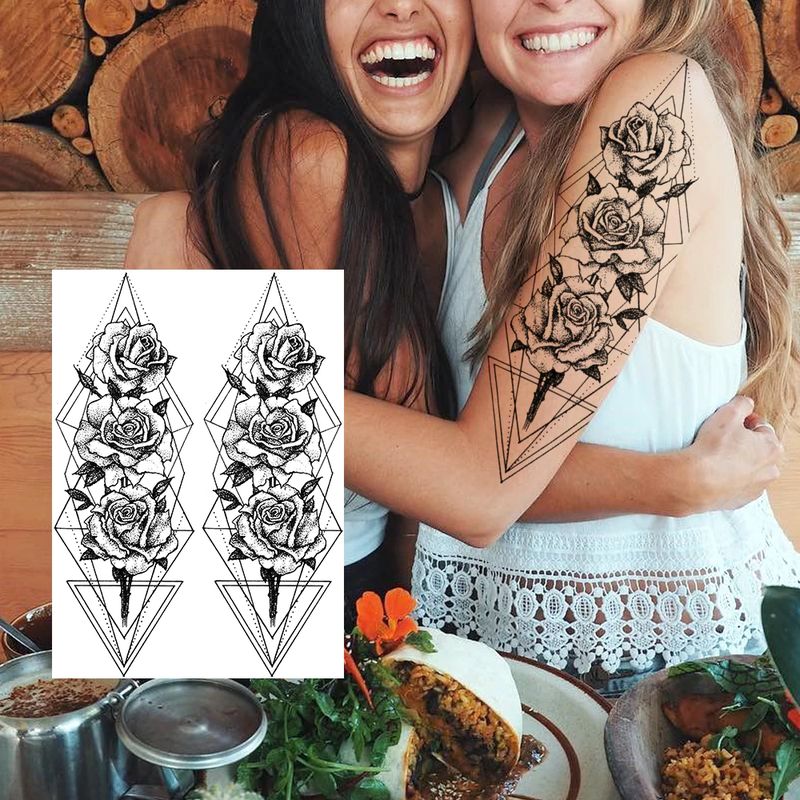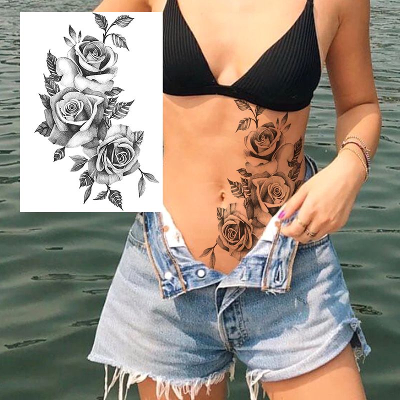 Tatuajes Temporales De Flores Para Mujeres, Arte Corporal Sexy, Pintura De Brazos Y Piernas Pegatina Realista Rosa Negra Falsa, Tatuajes Impermeables