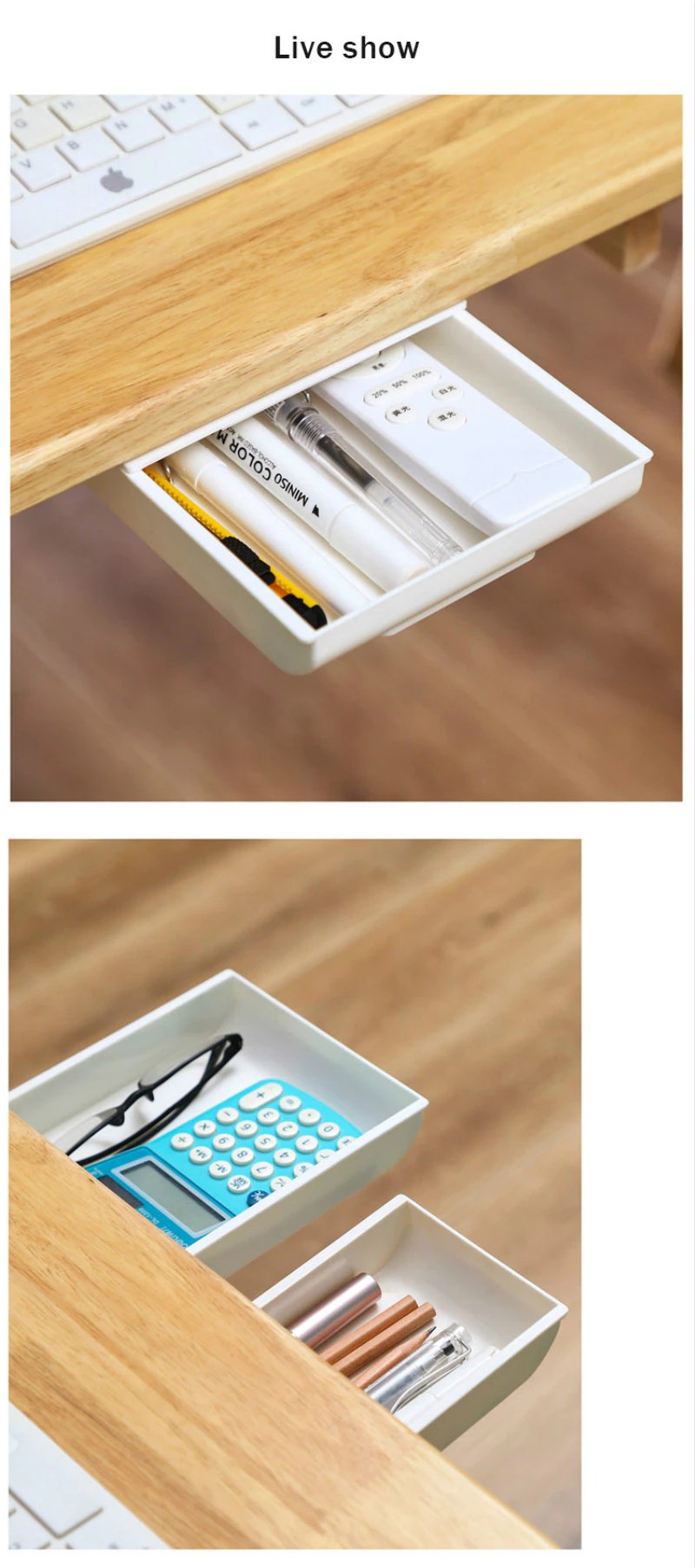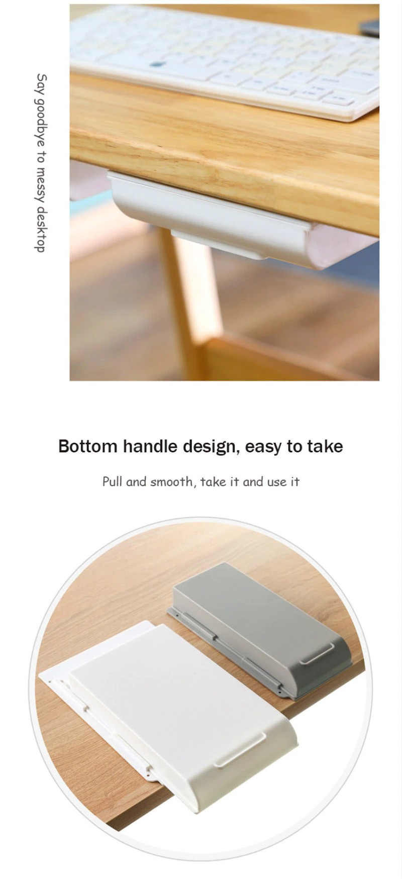 Gran capacidad de almacenamiento. El cajón debajo de la Mesa es ideal para guardar bolígrafos, reglas, compases, toallas de papel, tijeras, teléfonos móviles y más.