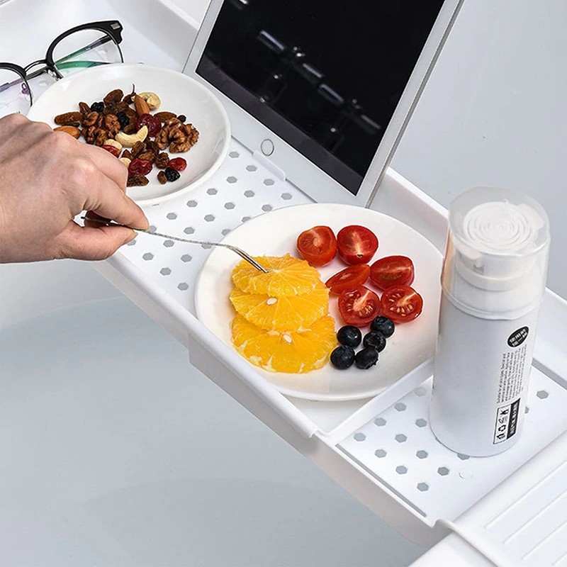 Estante de almacenamiento retráctil para bañera, bandeja de baño, estante para bañera, herramientas de baño multifunción, estante de almacenamiento de toallas, soporte de drenaje para fregadero de cocina