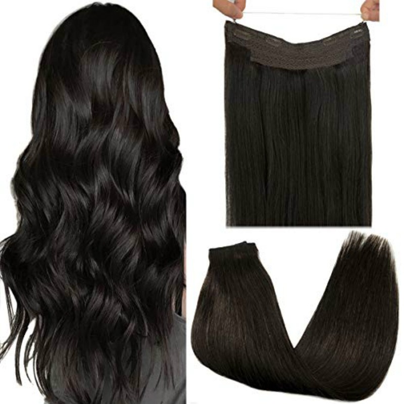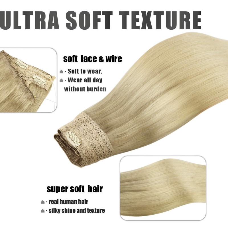 Extensión de pelo humano de línea de pescado recta extensiones de pelo Halo de alambre Invisible extensiones de pelo Remy Cable de pesca con 4Clips