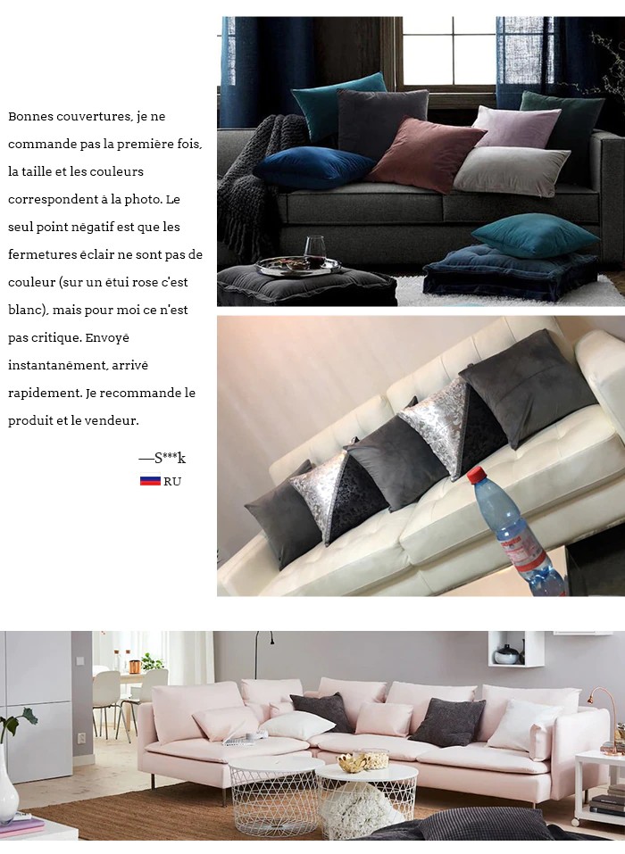 Producto que incluye: 1 PC Tapa de cojín de terciopelo