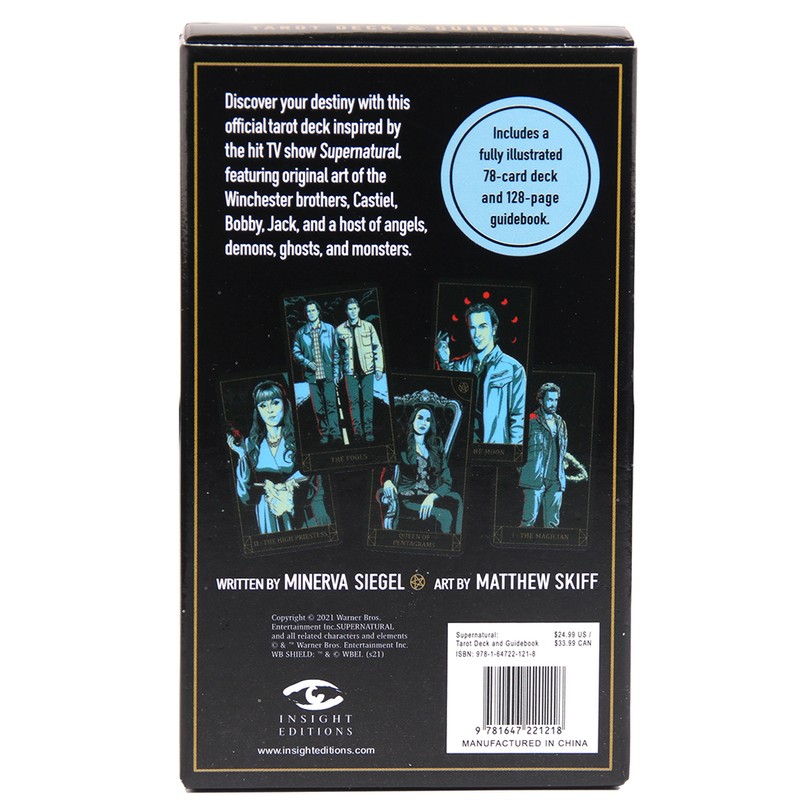 La serie de televisión de larga duraciónSupernatural¡Ahora es una baraja de tarot ilustrada! Con una obra de arte original inspirada en la iconografía clásica de tarot, la baraja de 78 cartas incluye todos sus personajes favoritos de Sam y Dean a Bobby Singer para Castiel a Crowley. La baraja también viene con una guía útil que explica el significado de cada carta, así como algunos simples separadores para lecturas fáciles. Es el regalo perfecto paraSupernatural¡Fans y entusiastas del tarot por igual!