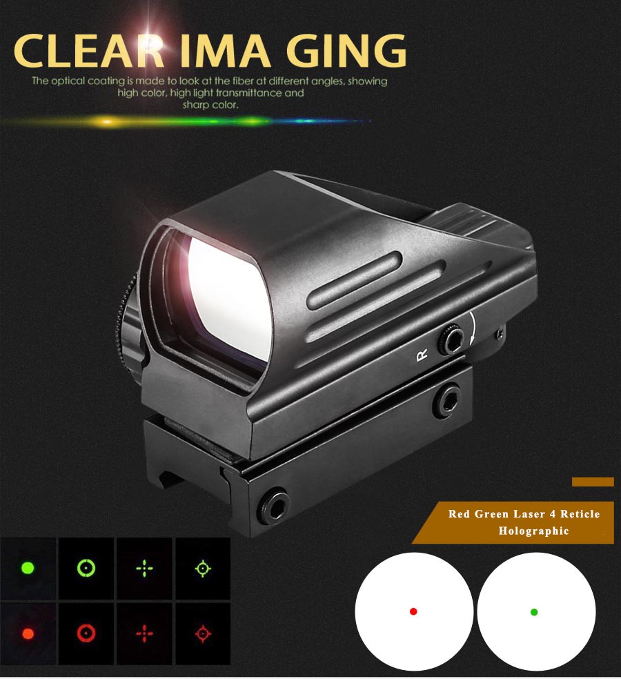 Mira Réflex Táctica Láser Rojo Verde, 4 Retículas Holográficas Proyectadas, Punto Rojo Alcance De Pistola De Aire Para Caza 20Mm, Montaje De Riel Ak